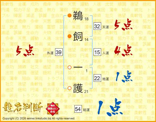 鵜飼一護さんの外運は39画の5点!