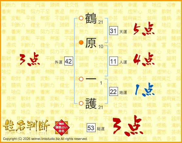 鶴原一護さんの総運は53画の3点!