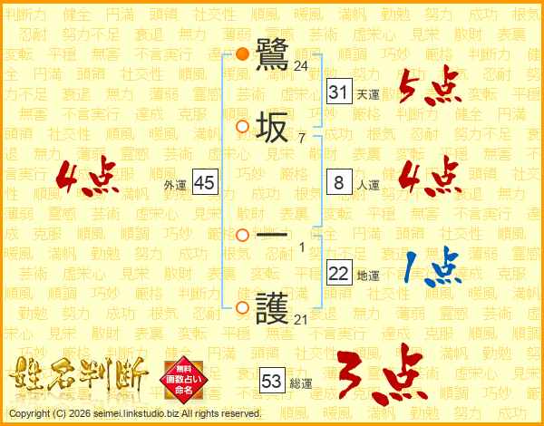 鷺坂一護さんの総運は53画の3点!