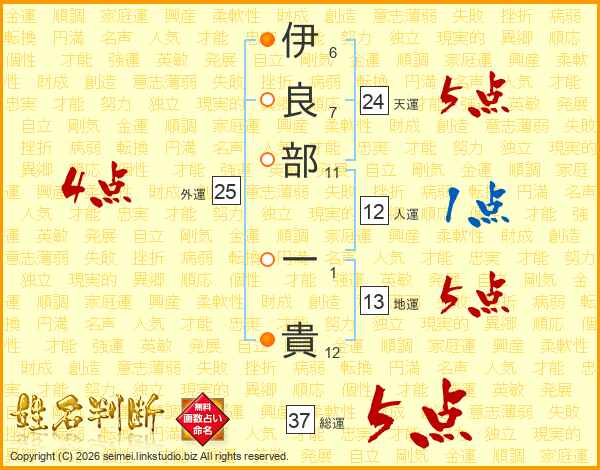 伊良部一貴さんの総運は37画の5点!