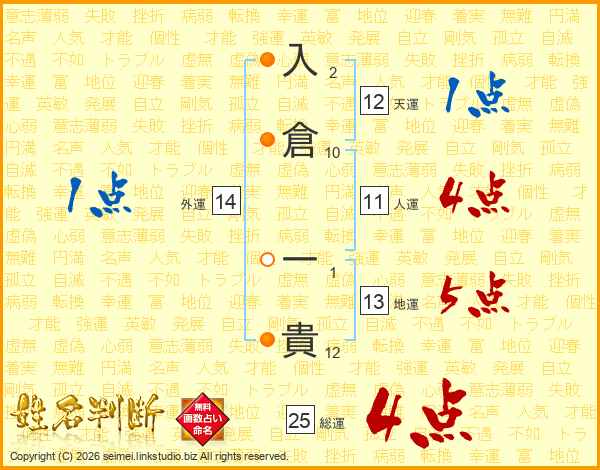 入倉一貴さんの人運は11画の4点!