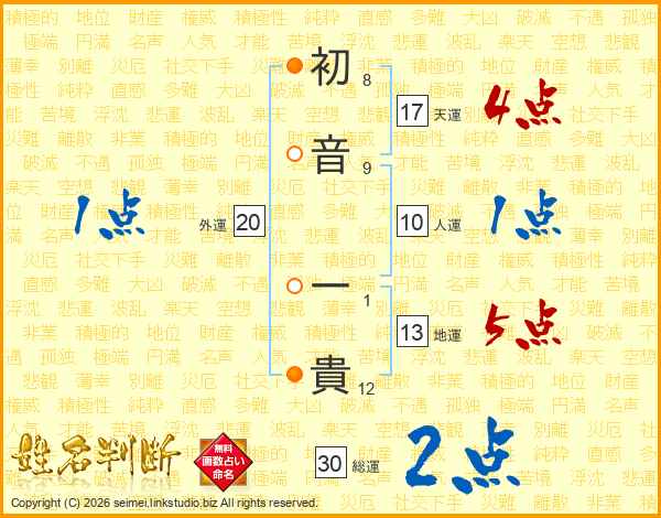 初音一貴さんの天運は17画の4点!