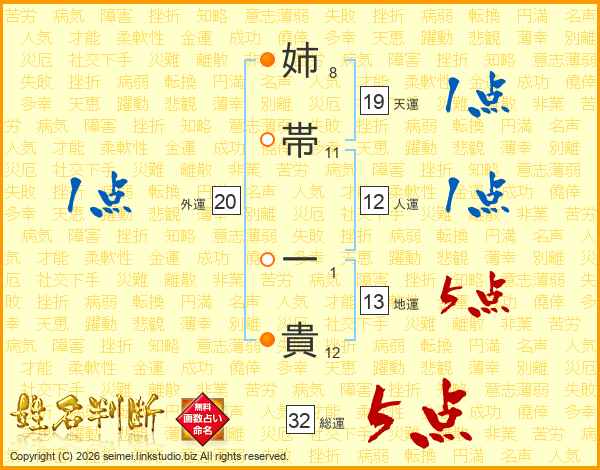 姉帯一貴さんの総運は32画の5点!