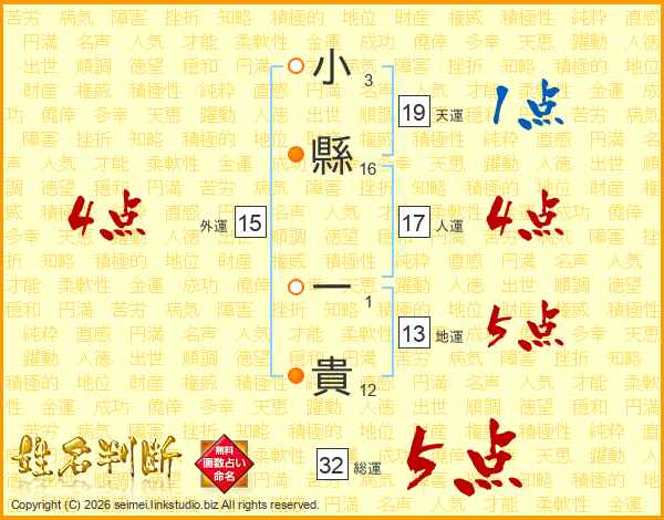 小縣一貴さんの総運は32画の5点!