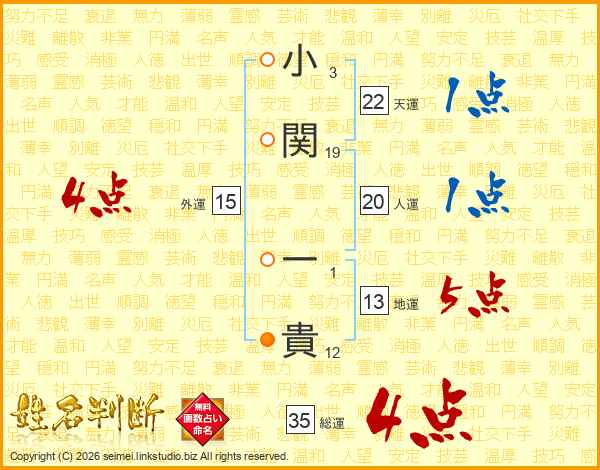 小関一貴さんの総運は35画の4点!