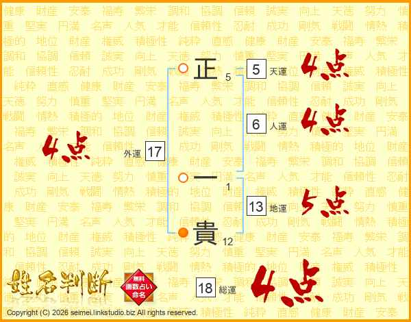 正(5画) 一(1画)貴(12画)