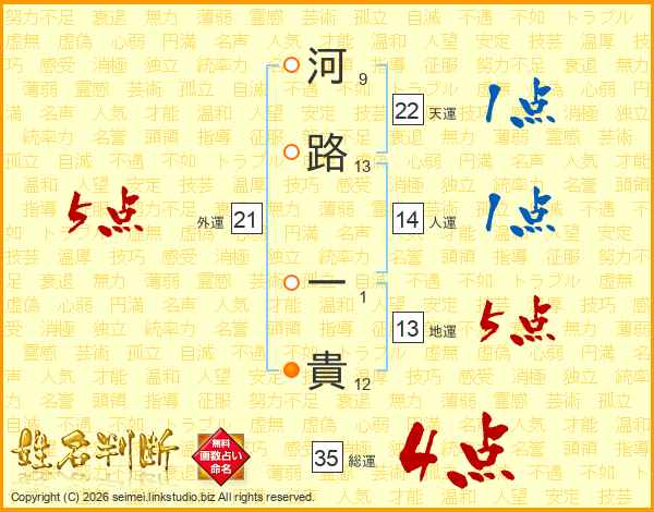 河路一貴さんの総運は35画の4点!