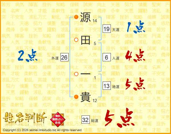 源田一貴さんの総運は32画の5点!