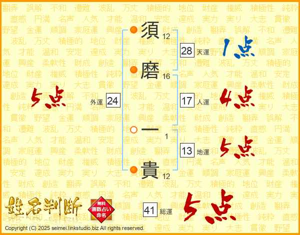 須磨一貴さんの総運は41画の5点!