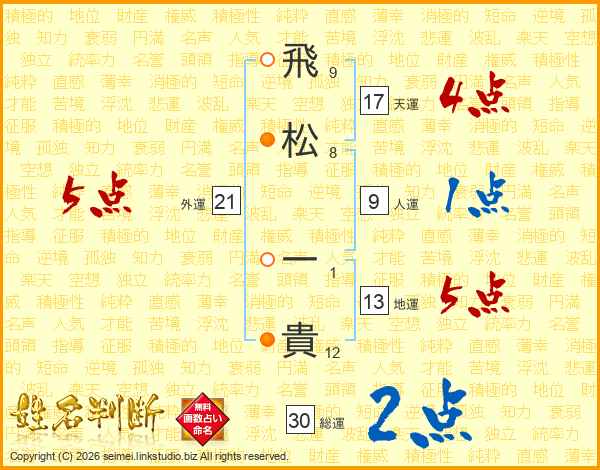 飛松一貴さんの天運は17画の4点!