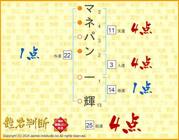 マネパン一輝さんの総運は25画の4点!