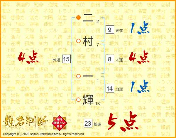 二村一輝さんの総運は23画の5点!