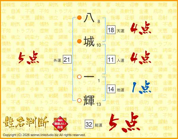 八城一輝さんの総運は32画の5点!