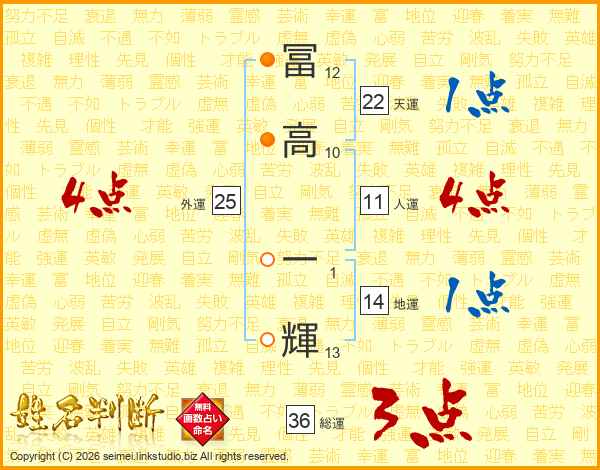 冨高一輝さんの人運は11画の4点!