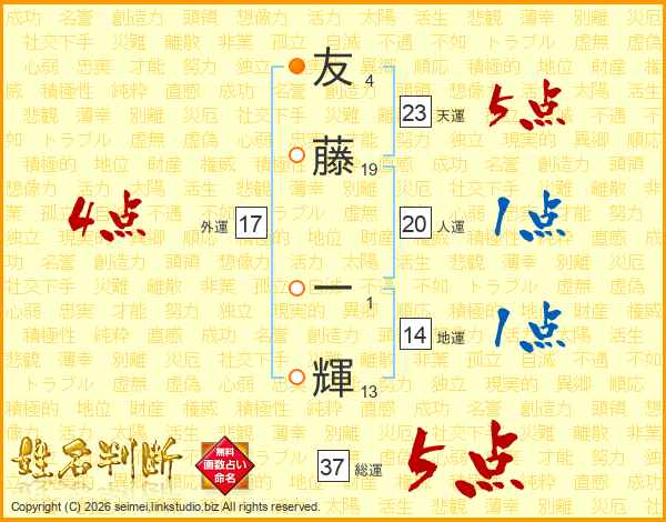 友藤一輝さんの総運は37画の5点!