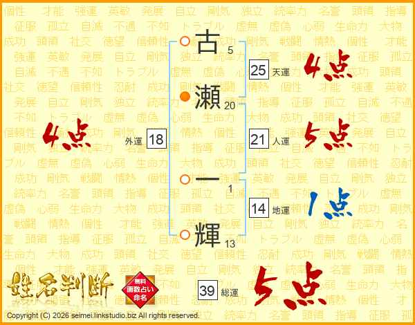 古瀬一輝さんの総運は39画の5点!