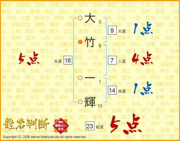 大竹一輝さんの総運は23画の5点!