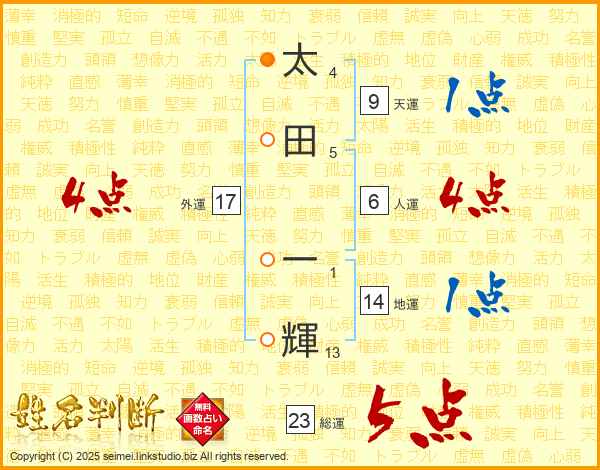 太田一輝さんの総運は23画の5点!
