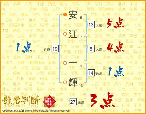 安江一輝さんの天運は13画の5点!