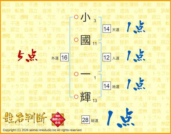小國一輝さんの天運は14画の1点!