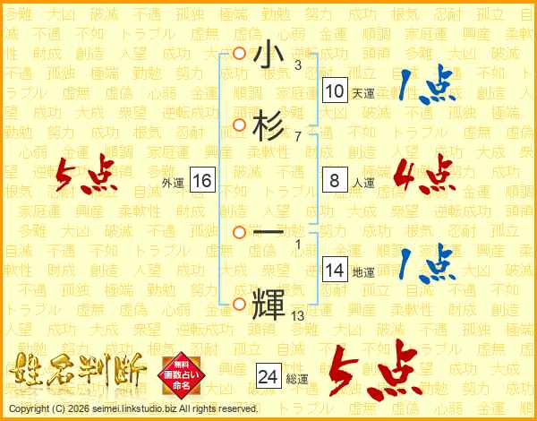 小杉一輝さんの総運は24画の5点!