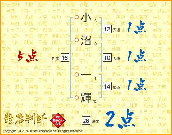 小沼一輝さんの地運は14画の1点!