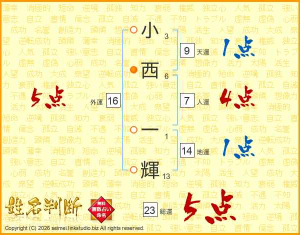 小西一輝さんの総運は23画の5点!
