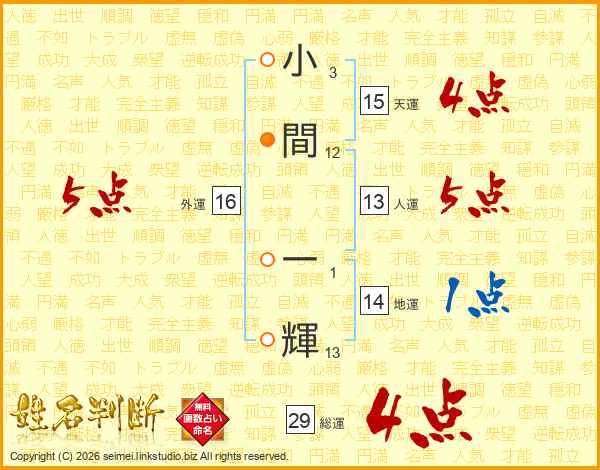 小間一輝さんの総運は29画の4点!
