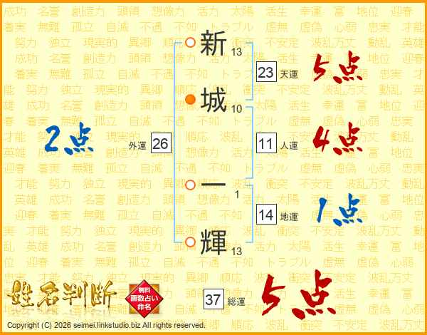 新城一輝さんの総運は37画の5点!
