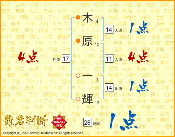 木原一輝さんの天運は14画の1点!