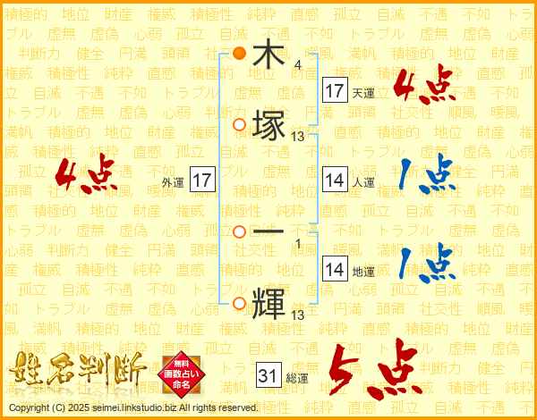 木塚一輝さんの総運は31画の5点!