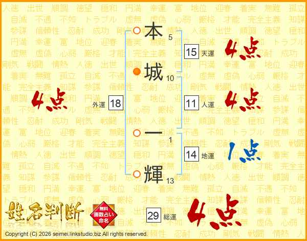 本城一輝さんの人運は11画の4点!