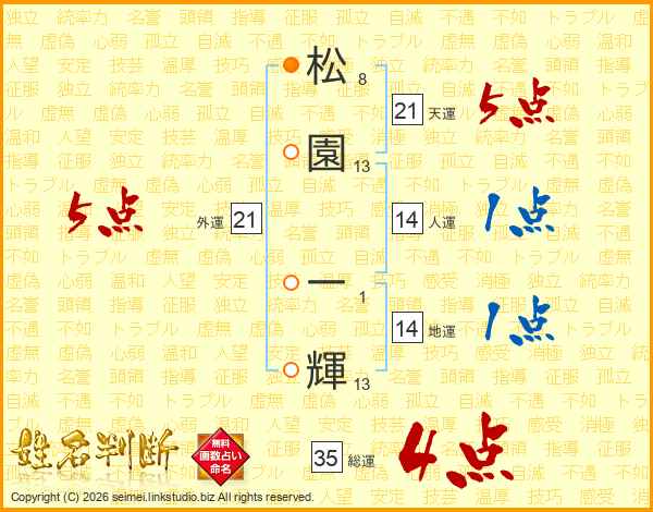 松園一輝さんの総運は35画の4点!