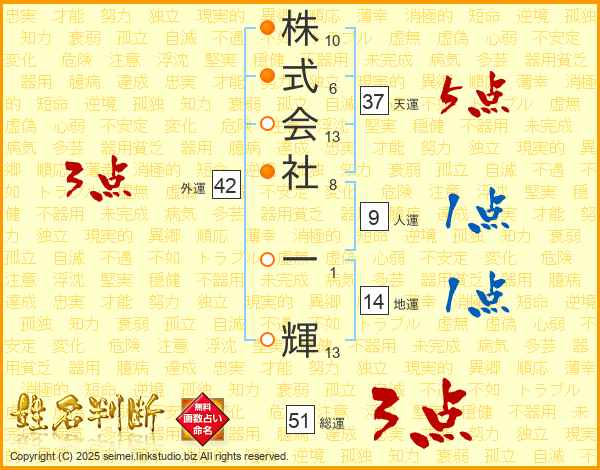 株(10画)式(6画)会(13画)社(8画) 一(1画)輝(13画)