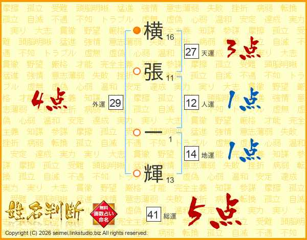 横張一輝さんの総運は41画の5点!