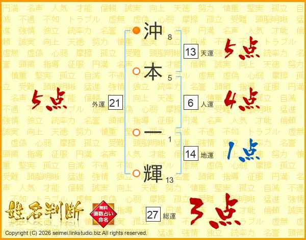 沖本一輝さんの天運は13画の5点!