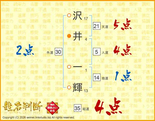 沢井一輝さんの総運は35画の4点!