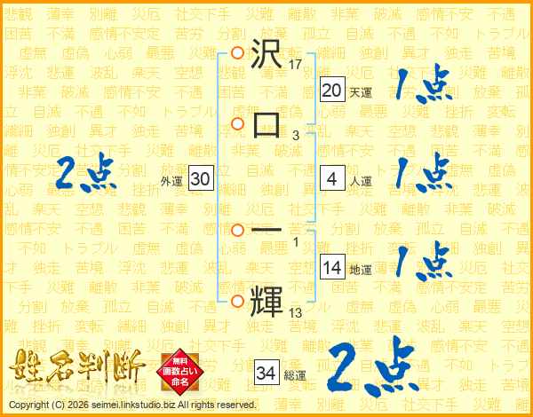 沢口一輝さんの総運は34画の2点!