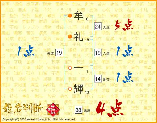 牟礼一輝さんの総運は38画の4点!