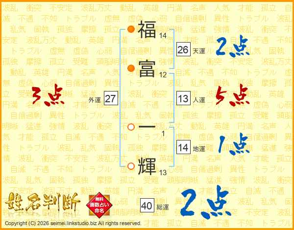 福(14画)富(12画) 一(1画)輝(13画)