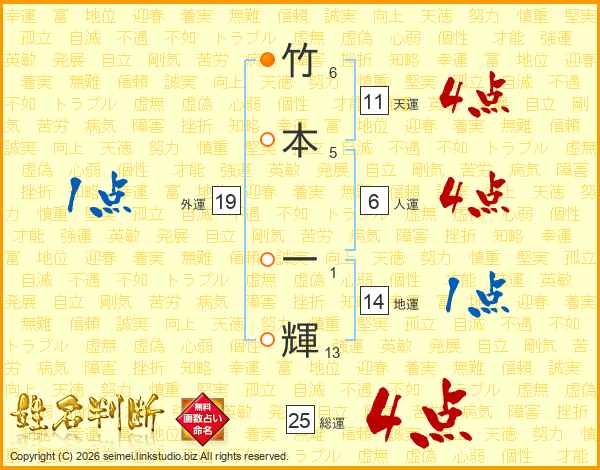 竹本一輝さんの天運は11画の4点!