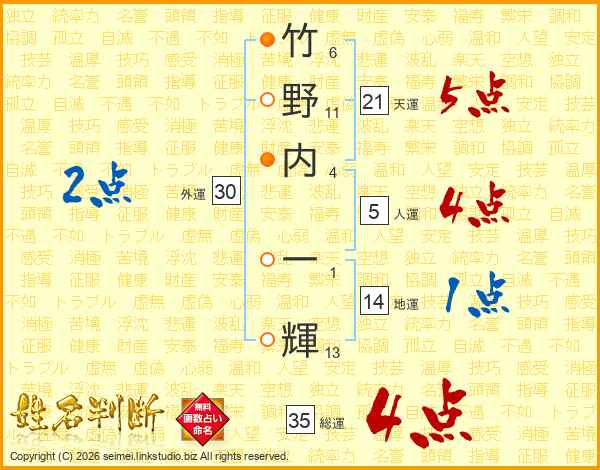 竹野内一輝さんの総運は35画の4点!