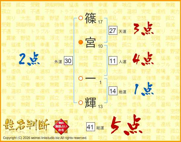 篠宮一輝さんの総運は41画の5点!