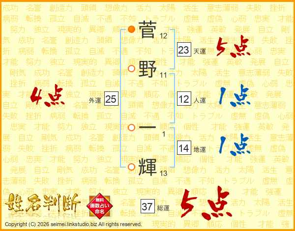 菅野一輝さんの総運は37画の5点!