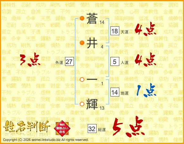 蒼井一輝さんの総運は32画の5点!