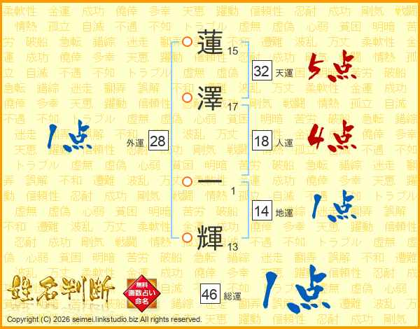 蓮澤一輝さんの総運は46画の1点!