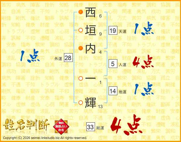 西垣内一輝さんの総運は33画の4点!