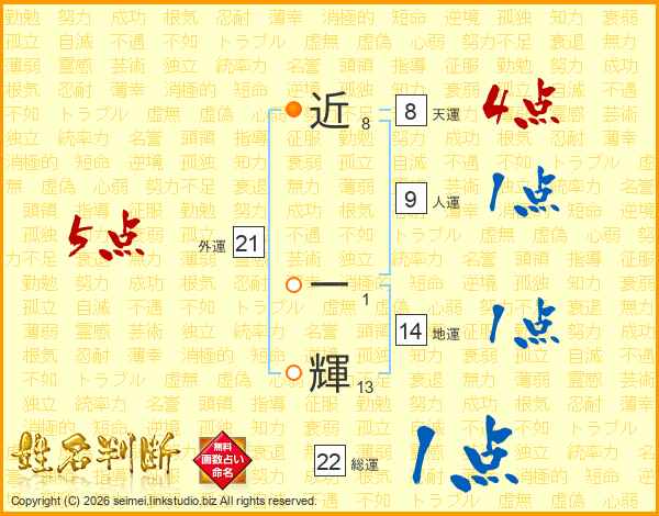 近一輝さんの総運は22画の1点!