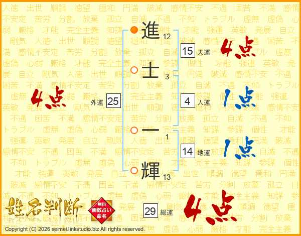 進士一輝さんの総運は29画の4点!