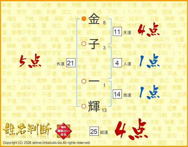 金子一輝さんの総運は25画の4点!